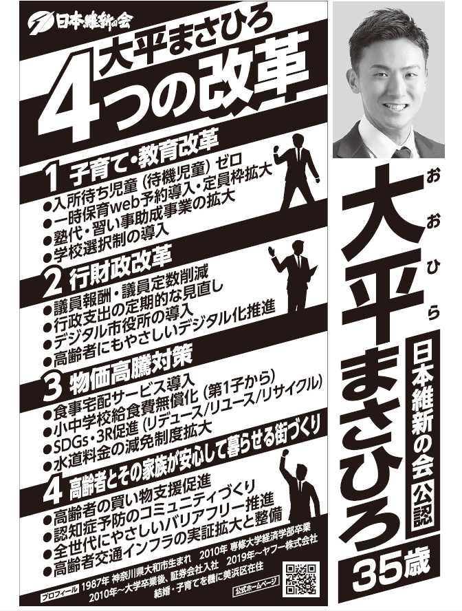 大平 真弘 議員の選挙公報/選挙公約/マニュフェスト